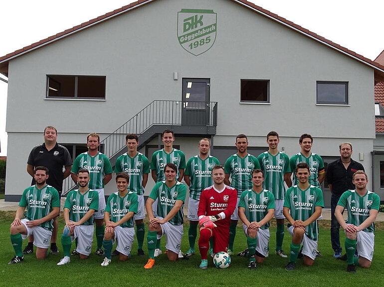 hinten von links: Spielleiter Andreas Sturm, Trainer Stephan Handl, Alexander Schlierf, Henrik Schneider, Maximilian Kraus, Andreas Häusler, Peter Muschaweck, Michael Gerngroß (C), Sponsor Günter Sturm