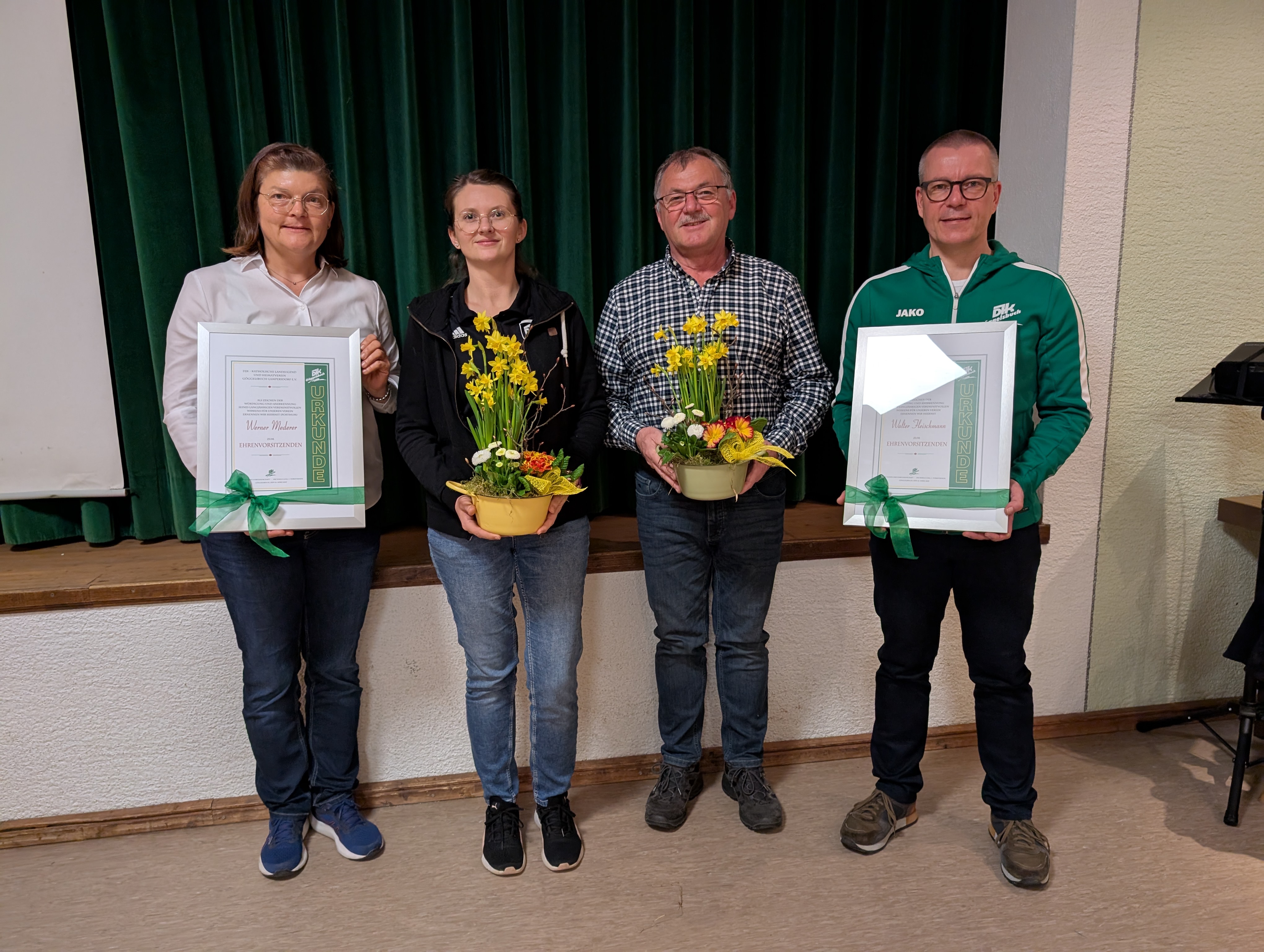 Werner Mederer, der uns am 28. Dezember 2024 plötzlich verlassen hat, war untrennbar mit der DJK Göggelsbuch verbunden. Schon mit 22 Jahren übernahm er das Amt des 2. Vorsitzenden, leitete die DJK 18 Jahre als 1. Vorsitzender und war 12 Jahre als Schriftführer aktiv. Besonders am Herzen lagen ihm die Dorfgemeinschaft und der Erhalt traditioneller Veranstaltungen wie der Christbaumversteigerung, dem Seniorennachmittag und der Radlwallfahrt, die er 20 Jahre lang organisierte. Werner war auch ein unverzichtbarer Teil der Theatergruppe und kümmerte sich, auch wenn er nicht selber spielte, um den Bühnenbau. Unter seiner Leitung konnte die Grundstücksfrage der Sportplätze endlich gelöst werden. Leider verließ uns Werner mitten in den Vorbereitungen für die Christbaumversteigerung. Heute ehren wir ihn posthum als Ehrenvorsitzenden. Manuela Taylor nimmt die Auszeichnung stellvertretend entgegen.