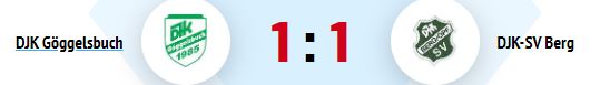 Nach 20 Minuten befreite sich Berg und brauchte mit ihrem quirligen Filimon Haile die Abwehr ein ums andere Mal in Bedrängnis. Dennoch ging Göggelsbuch mit 1:0 in Führung. Nach einer feinen Seitenverlagerung auf die rechte Seite, bediente Michael Gerngroß den in Stellung gelaufenen Wägner, der aus spitzem Winkel vorbei an Torwart Matthias Meis einschob. Anschließend machte die DJK Berg mächtig Druck, dem Göggelsbuch allerdings Stand hielt. Die einzige gefährliche Chance hatte Berg nach einem Freistoß von Timo Endres, den Torwart Marco Muschaweck zur Ecke klären konnte. Danach bat der gut leitende Schiedsrichter Stephan Weihrauch zum Pausentee.