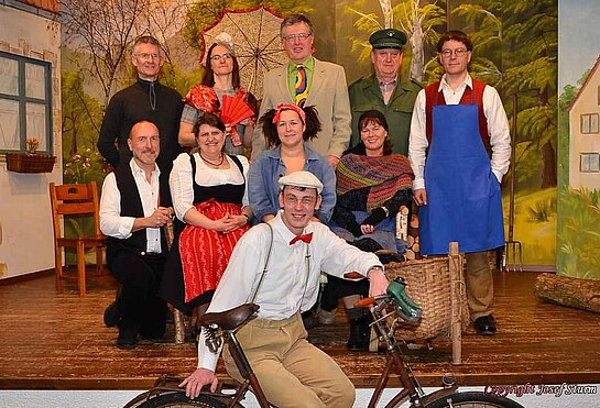 Nach der letzten Aufführung des Theaterstücks „Zwoa harte Nüß“