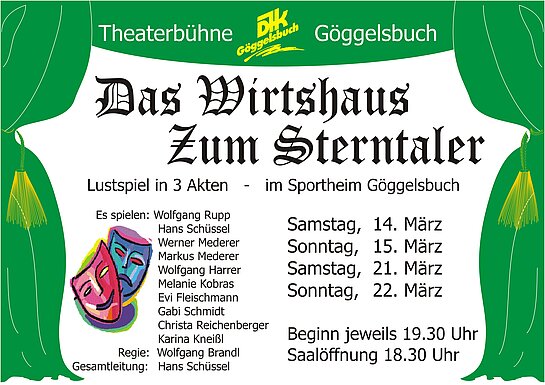 Das Stück wird von der Theatergruppe der DJK Göggelsbuch an folgenden Tagen im Jugend und Sportheim in Göggelsbuch aufgeführt: