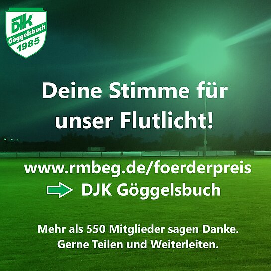 Wir möchten unsere Flutlichtanlage sanieren. Dafür brauchen wir eure Stimme, um beim VR-Förderpreis 2021 der Raiffeisen - meine Bank eG bis zu 4.000€ zu gewinnen.
