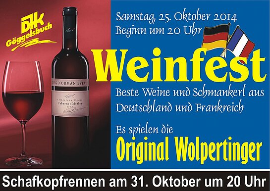 Es ist bald wieder soweit! Der Sommer ist vorbei und das Weinfest steht vor der Tür. Herzliche Einladung zum Weinfest, heuer unter dem Motto:" Das beste aus Deutschland und Frankreich"